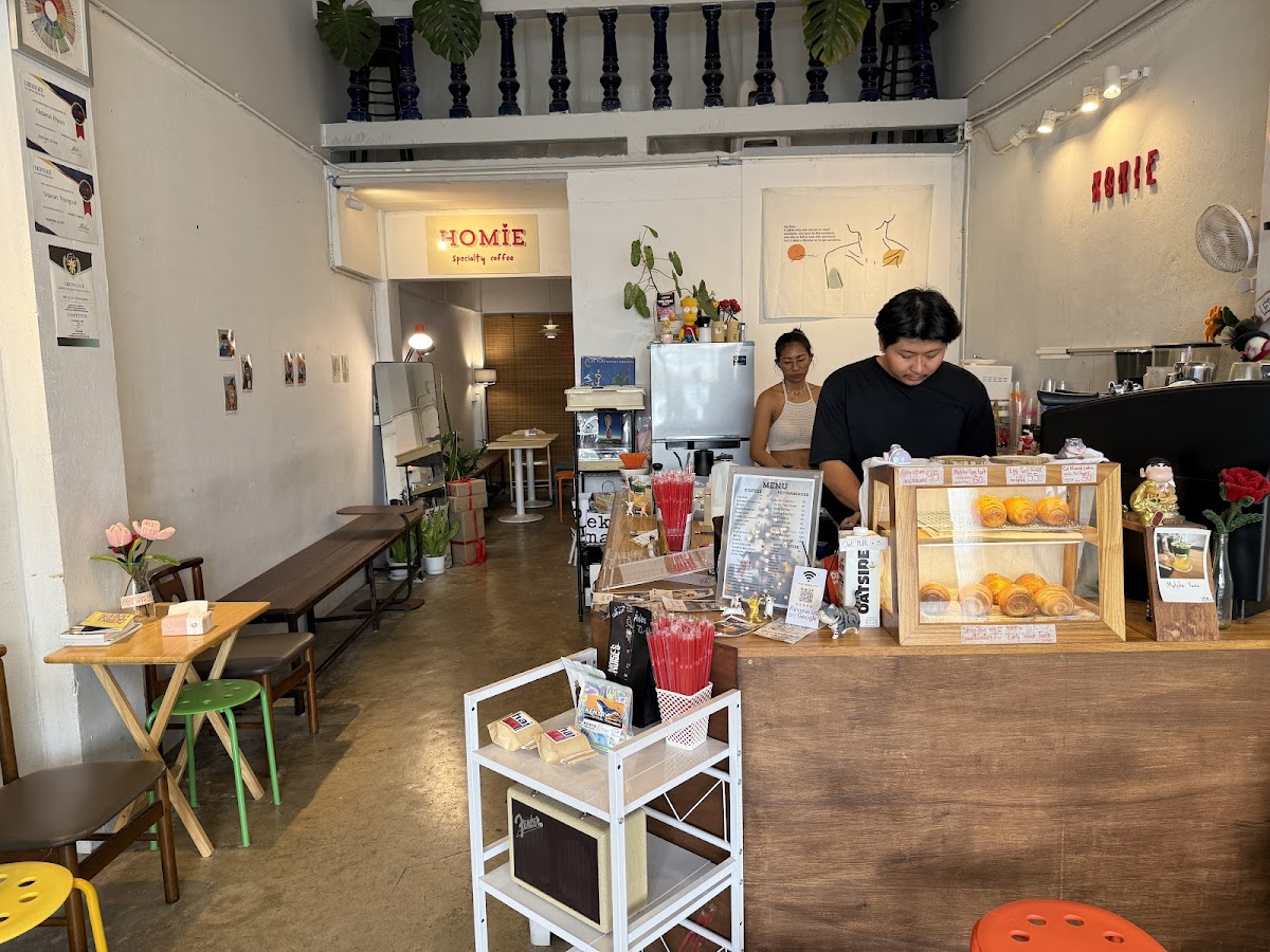 But HOMIE isn't just about drinks. The café collaborates with local artisans, such as Sweet Tooth from Ban Chang, to provide delectable treats like the Shio Bread. This pastry complements the beverages nicely, offering a delightful crunch on the outside and a soft, warm center—ideal for dunking into your drink or enjoying on its own.